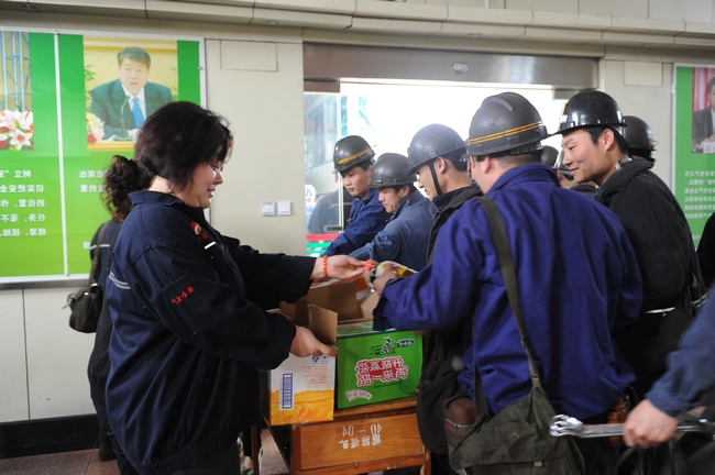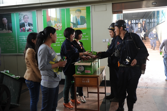 5月1日下午,鹿洼煤矿工会在井口举行了“庆五一,送温暖”活动。女工协管员们把一瓶瓶饮料放到上下班职工们手中,同时向矿工兄弟们送上了节日的祝福,并叮嘱他们平平安安上班,开开心心过节,全力抓好安全生产。当天共发放饮料600余瓶。 (文:张秀丽  图:董娟)