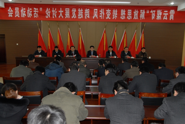 会议由党委书记范继鹏主持,范书记首先传达了《中共济宁能源发展集团有限公司委员会关于深入开展“解放思想、转变作风、跨越发展大讨论”活动的实施意见》,对大讨论活动的重要意义、总体思路、方法步骤、组织领导和工作要求均进行了认真传达和深刻剖析。范继鹏强调指出,在霄云煤矿即将转型的非常时期,组织开展 “解放思想、提高标准、创造佳绩、跨越发展大讨论”活动意义重大,全矿干部职工应仔细学习贯彻文件精神,切实领会大讨论活动要领,拓宽工作思路,创新干事理念,弘扬艰苦奋斗的作风,提升思想境界和标准,积极查摆问题、落实问题、解决问题。之后,范继鹏传达了《中共济宁能源发展集团有限公司纪律检查委员会关于在集团公司党员干部中开展党的纪律教育的意见》,并要求全矿党员干部认清形势、提升修养,做到廉洁自律、勤俭节约。